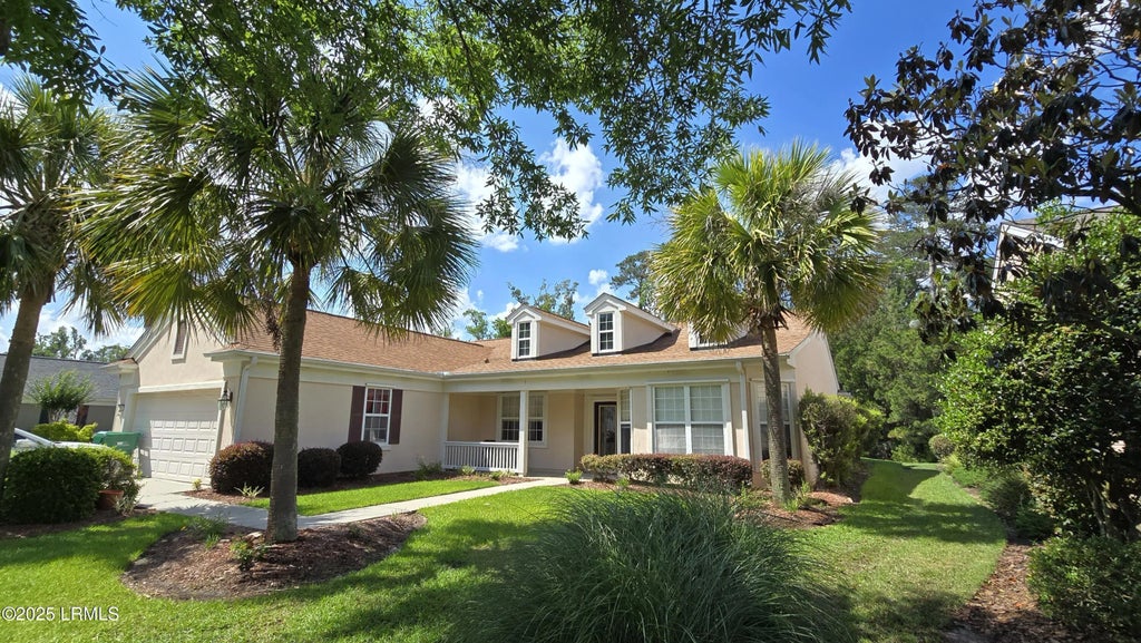 As you arrive, a covered front porch invites you into this sought after Lilac model. Entry foyer opens to a spacious Great Room that includes a formal dining area and a breakfast bar that overlooks a kitchen featuring an extended prep island, granite countertops, ample cabinet space, a cozy eat-in area with bay window. The den, equipped with French doors, offers the potential for additional sleeping space for guests. Primary bedroom boasts a bay window and two generously sized walk-in closets, while the private guest area includes an adjoining full bath. There's an extended garage for your convenience. Lagoon views abound in the rear.