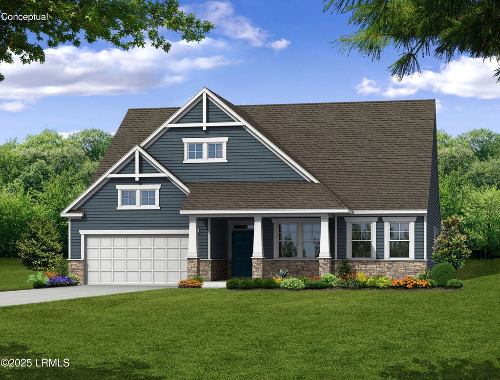 This Sullivan plan features the primary bedroom and luxury bathroom along with 2 other quest bedrooms and a 2nd full bath on the main floor. There is a 4th bedroom along with a 3rd full bath and loft area on the 2nd floor. This home comes included with a gorgeous gourmet kitchen with cooktop, double oven and quartz countertops along with hardwoods and ceramic tile throughout. There is also a home office, large laundry room with cabinets and a mud room drop zone with coat closet included. This stunning home also features a beautiful lighting, plumbing and trim package through the whole home. There is a huge covered rear porch off the breakfast room with gorgeous wooded and lagoon views surrounded by majestic mossy live oaks! This home is located on a gorgeous lot on a quiet street!!