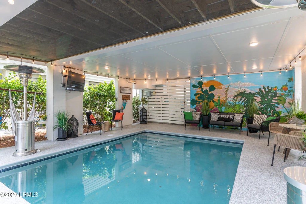 Real Life Sandcastle by the Sea! In the heart of Hilton Head Island, this beautifully and Professionally Fully Furnished 6 Bedroom, 4 Full Bathroom home sleeps 22 and offers upscale comfort throughout—no carpet, only gorgeous tile! Enjoy a Fully Loaded Gourmet Kitchen, Private Heated Saltwater Pool, and Screened Porch with a Large Swing Bed overlooking 1.5 Acres of Protected Woods in the Backyard. An Elevator runs from the Ground floor Up, making luggage and grocery trips a breeze. Just 1 Block in either direction brings you to Dining, Shopping, Adventure Cove, with Folly Field Beach only another short block away with a Nice Paved Tree Lined Path. Amazing Walkability + Bikeability! Gated entrance closed nightly for added privacy. Ideal as a luxury stay & play short-term rental investment.