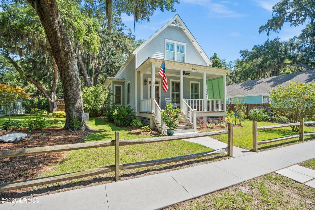 Welcome to 1108 12th Street — a beautifully appointed 3-bedroom, 2.5-bath home nestled on a large, picturesque parcel beneath majestic oaks. This Lowcountry gem offers timeless curb appeal with a welcoming front porch designed to catch the coastal breeze, and a screened porch perfect for outdoor relaxation.