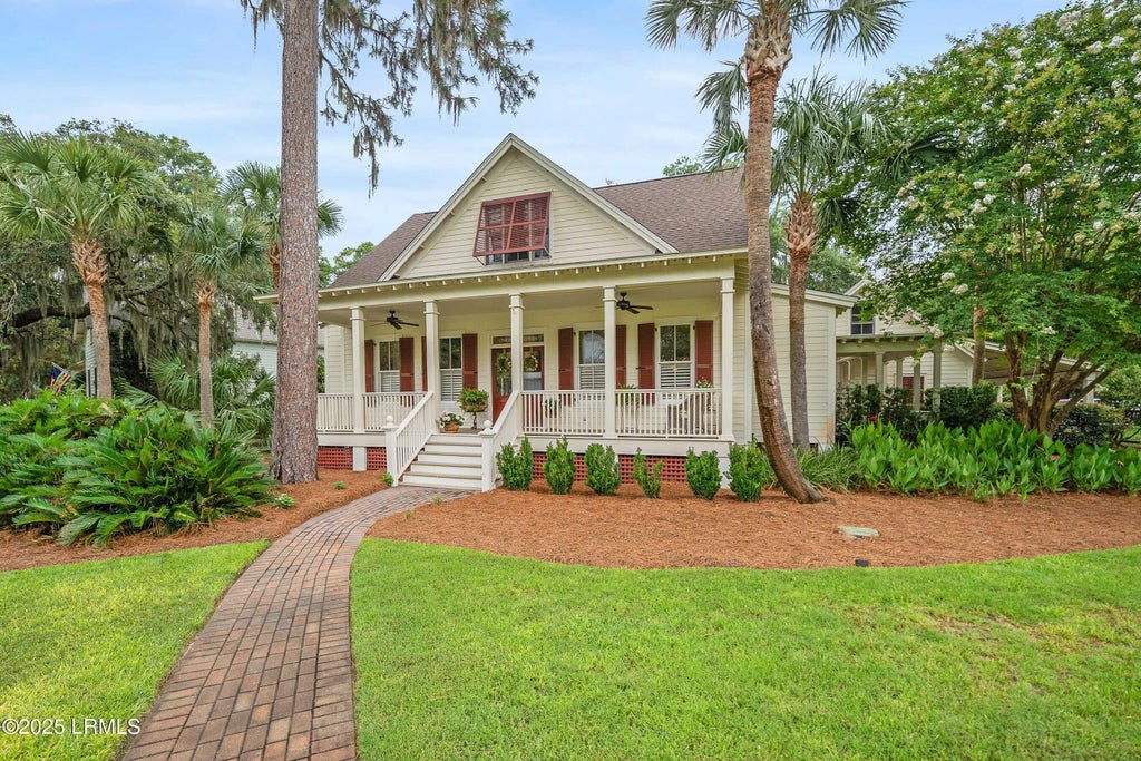 From the moment you walk up the brick paver walkway, through the front French doors, see the 10 ft ceilings, wide plank antique heart of pine floors throughout, beautiful glass transoms, architectural moldings, a true chef's kitchen with Italian marble counter tops, large furniture island piece with prep-sink, tons of cabinetry, butler's pantry, you know this is a custom home. The dining room, living room and master bedroom with gorgeous on-suite, all lead to the wrap-around screened porch with beautiful views of the fenced back yard. This Allison Ramsey designed home features 4 bedrooms and 2.5 baths in the main home and an additional air conditioned space above the garage. Brand new roof May 2025 and an updated owner's suite shower. The private drive at the rear of the home is located across from a community pond with a 2-car garage with additional carport space. Easy care landscaping completes this custom home. Enjoy the community amenities of Coosaw Point including community boat landing and dock, tennis courts, pickle ball and a beautifully designed clubhouse with community pool. "Seller is offering Buyer concessions in the amount up to $20,000 towards buyer updating the HVAC system or towards closing costs.