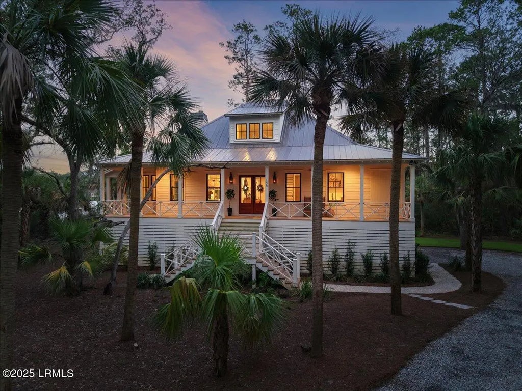 Completed in 2024, this custom Allison Ramsey-designed home sits on a 1.14-acre marshfront lot, created by consolidating part of a neighboring parcel to enhance privacy, space, and views. Designed to embrace its surroundings, the elevated home offers sweeping marsh views and a blend of Lowcountry charm and casual luxury. Built by CMS with top-tier finishes, it features approx. 2,500 sq ft, French oak floors, Andersen windows and doors, 10-foot ceilings, and a new elevator. A rare opportunity for buyers seeking a brand-new home without the time and hassle of building. The kitchen features Thermador and Bosch appliances, custom cabinetry, and a large island. Outdoor living includes a wraparound porch, tabby fireplace, gas lanterns, irrigation, and a tankless water heater. Completed in 2024, this custom-designed home offers a rare combination of new construction, high-end finishes, and a high-elevation marshfront setting. Positioned on a 1.14-acre lot in a quiet cove, the property provides sweeping tidal views and a unique treehouse-like perspective that sets it apart from others on Callawassie Island.