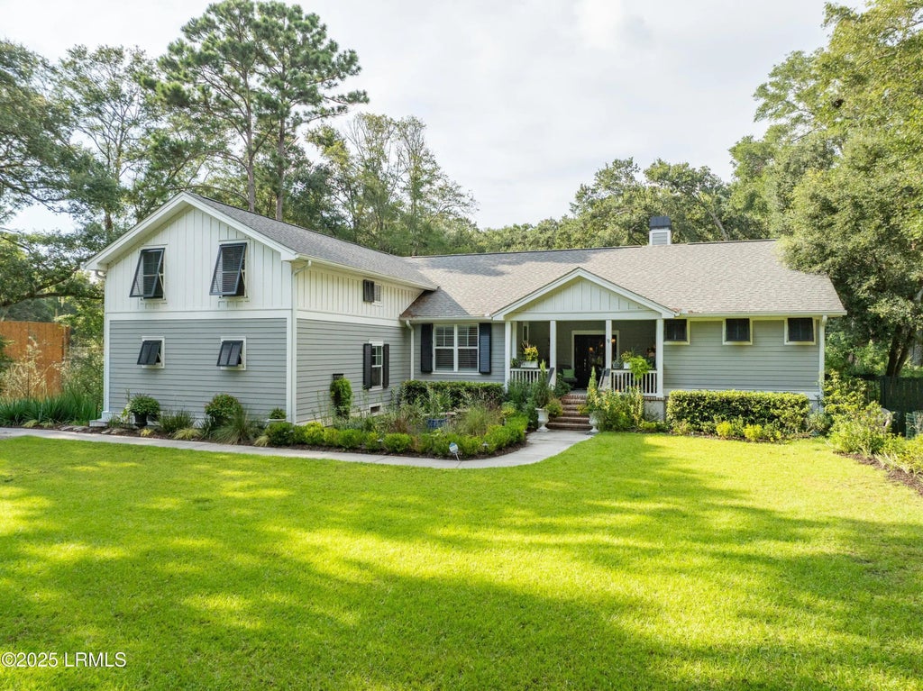 Luxury meets Lowcountry charm in this stunning 4BR home with custom upgrades, & lush gardens in the private waterfront Mark Island community. Built in 2019 with a custom 2024 addition, this 4BR/2.5BA home sits on a beautifully landscaped .69-acre fenced-in lot with peep views tidal creek across the street. Step inside to gleaming Brazilian Cherry flooring, open living spaces, custom moldings, fireplaces, built-ins, and a chef's kitchen with an oversized quartz island & abundant cabinetry. Three main-floor bedrooms plus a versatile FROG. Multiple outdoor living areas, extensive gardens, and an oversized side-entry garage. This home is a designers dream and a must see with no expense spared!