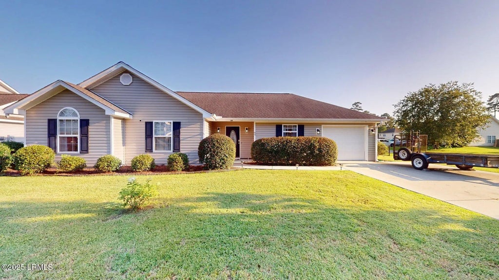 Immaculate and move-in ready, this charming ranch in Mint Farms sits on a desirable corner lot. Enjoy newer LVP flooring throughout (no carpet) and a spacious living room with vaulted ceiling and French doors opening to the patio and fully fenced yard. The kitchen features newer stainless steel appliances, double pantries, and a bright dining area for gatherings. The primary suite includes a walk-in closet and full bath, while two additional bedrooms share a guest bath. A dedicated laundry room with storage, one-car garage, and widened driveway for side-by-side parking add convenience. Attic has spray foam insulation keeping heating and cooling costs lower. Ideally located near both bases and Beaufort Station shopping—this home is ready for you to settle in and relax.