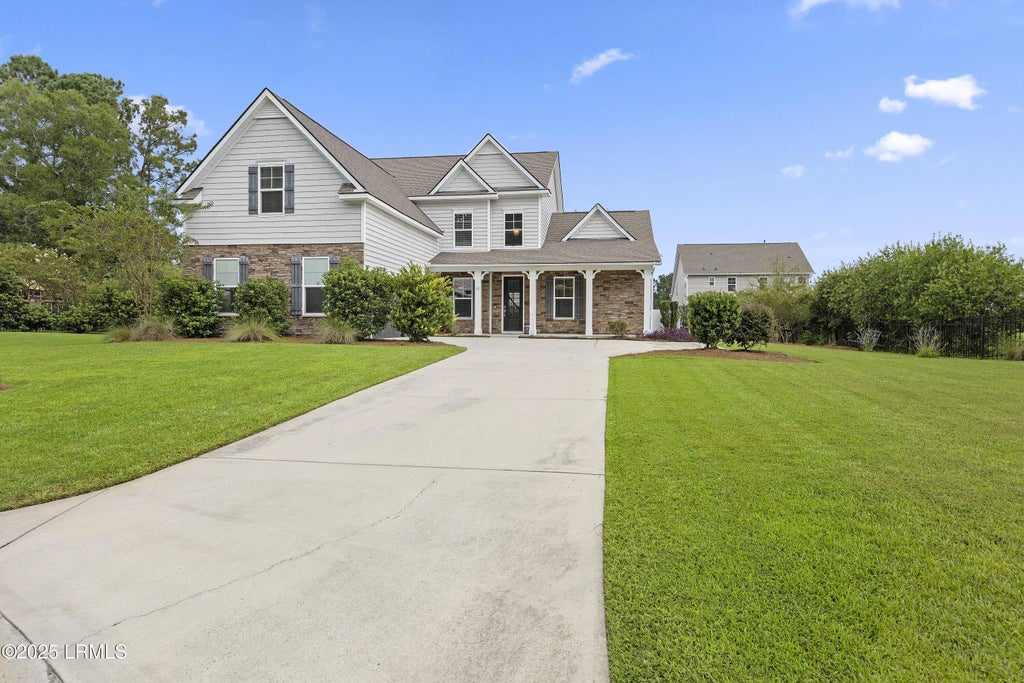 Welcome to your dream home! This Alder model in Cypress Ridge features 5 bedrooms, 3.5 baths, and a spacious first-floor primary suite with dual sinks, garden tub, and a generous walk-in closet. The gourmet kitchen is equipped with stainless steel appliances, natural gas stove, granite countertops, and ample storage. Additional highlights include a cozy fireplace, custom wainscoting, shiplap accents, crown molding, wood and LVP flooring, two-car garage, extra-long driveway, screened back patio, covered front porch, and attractive, easy-care landscaping. Situated on a quiet cul-de-sac, this home is conveniently close to top-rated schools, shopping, dining, and major highways for access to Hilton Head, Old Town Bluffton, Savannah, Beaufort, and local bases. Schedule your showing today!