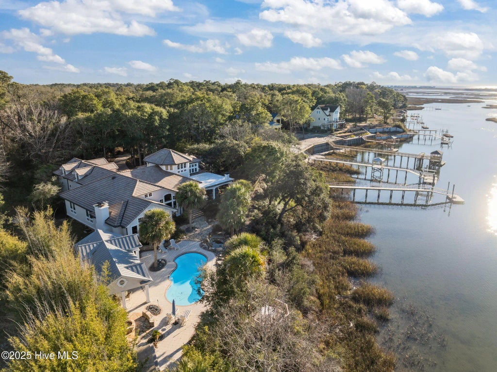 Everything about this waterfront estate is bold, private, & designed for grand-scale living. Three gated entrances introduce 2.76 acres of manicured grounds, where a circular driveway leads to an oversized 3-car garage & the impressive main residence. With over 320 ft of frontage on the Shallotte River, this 5,398 sq ft home and a 456 sq ft pool house captures sweeping water views & delivers true resort-style living. Built in 2004, the home offers 4 bedrooms, 5.5 bathrooms, a dedicated office, & a large bonus room. Grand interior spaces feature Brazilian cherry hardwoods & marble tile, w/ water or pool views from nearly every room. A domed foyer w/ a hand-painted ceiling & crystal chandelier sets the tone for the home's refined craftsmanship. At the heart of the home, the chef's kitchen boasts handcrafted cabinetry, premium Thermador and Viking appliances, & both formal and casual dining spaces. The expansive living room offers a stunning marble fireplace, wood-paneled ceiling, built-ins, & a generous wet bar-ideal for entertaining. The private executive office offers custom built-ins, ornate trimwork, & stunning views. A luxurious first-floor primary suite offers a tranquil retreat with separate spa-style bathrooms & dual walk-in closets. Outdoor living is exceptional. A private dock and community boat ramp offers easy access to the Shallotte River and quick trips to the Intracoastal Waterway. The grounds also feature a dramatic riverfront pool & an impressive pool house complete with a kitchen, bar, & bath. Covered dining areas, grilling space, fire pit, pond, putting green, & a footbridge leading to a sunset deck create multiple spaces to relax or entertain. A fully fenced perimeter, 65kW whole-house generator, & impact-rated Andersen windows/doors provide additional privacy and security. This is a rare opportunity to own a gorgeous waterfront estate offering unforgettable views, exceptional outdoor living, & complete privacy-call today to schedule your showing!