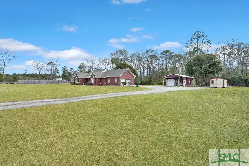 Here is the prefect home with acreage in a quiet area of South Effingham County. This stately brick home has 4 bedrooms, 2 full baths, 2 half baths, a spacious living room with an electric fireplace (perfect for converting to gas logs), formal dining room, recently remodeled eat-in kitchen with updated appliances, and a 2-car attached garage. The large laundry room provides ample storage, and the fourth bedroom is upstairs with its own half-bath and can double as an office or guest suite. The property also includes an amazing 28x24 workshop equipped with electricity, and a 12,000 BTU portable cooling unit. The workshop features a 8 foot garage door--ideal for storing recreational vehicles, a four-wheeler, or other equipment. Relax outside in the open-air and enjoy the wooded view off the large concrete patio in your curtained/screened gazebo. Don't miss out on this perfect blend of privacy & nature. 3 acres are still wooded, perfect for a new pond or other recreational expansion.