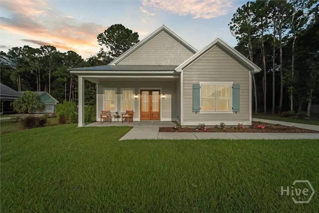 Your dream coastal retreat awaits in the charming Yellow Bluff community! This stunning new construction low country home offers 3 beds, 2.5 baths along with a two-car garage & long driveway with extra parking. Step onto the welcoming front porch and into a charming, open living space filled with natural light. The gorgeous kitchen features granite countertops, a large island, stainless appliances, and a walk-in pantry. The spacious master suite is a true sanctuary, boasting a huge walk-in closet with a stylish chandelier and a spa-like ensuite with a soaking tub and walk-in shower. Two additional bedrooms share a beautifully designed bath, while a convenient laundry room with a sink adds extra ease. Enjoy a serene wooded view from the backyard—perfect for relaxing or entertaining. Yellow Bluff offers incredible amenities, including a dock with boat hoist, pool, clubhouse, and more. Plus, you're just a 30-minute boat ride to St. Catherine’s or Ossabaw Island. Schedule your tour today!