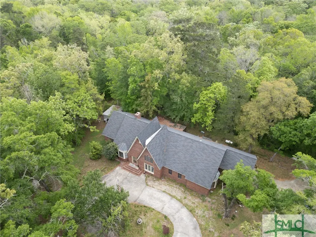 Incredible opportunity to own 30 acres bordering the Altamaha River. While the home does not offer river views, the land extends to the river’s edge, offering privacy and outdoor potential. This 3,720 sq ft brick home features a formal living and dining room, family room with fireplace and beamed ceiling, expansive sunroom, and a large kitchen with island, butler’s pantry, breakfast bar, and double ovens. The split floor plan includes a spacious primary suite with double closets, vanities, garden tub, and separate shower. There is also a private in-law suite, separate guest house with kitchen, living area, bedroom, and bath, plus a brand-new 40x40 workshop that holds a power supply and is positioned on a concrete floor. The home needs work but has strong bones and endless potential.