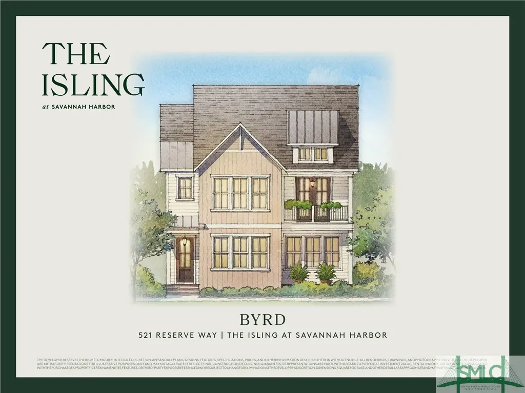 Another low country home from The Isling, the Byrd provides luxury new construction detail at every level, both inside and out. Expansive porches, tabby fireplace & flickering gas lantern welcomes you to the front door. Inside, hardwood floors & soaring, 10’ ceilings energize an open concept. The kitchen provides an oversized island, counter seating and a Thermador appliance package inclusive of gas cooktop + built in wall & speed oven. Living room, dining room powder & Junior suite on 1st floor; laundry, primary suite, 2 more bedrooms, 2 full bathrooms, loft & 2nd porch finish upstairs. A 2-car garage, breezes from the Back River & short stroll to clubhouse + pool included. The Isling is part of the Savannah Harbor community complete with on-island golf, pickleball, marina & view of City Hall’s golden dome from your walk in neighborhood parks. World renowned historic downtown Savannah is remarkably just a ferry ride or short 2.5 mile drive away. Expected delivery date Winter ‘25/26.