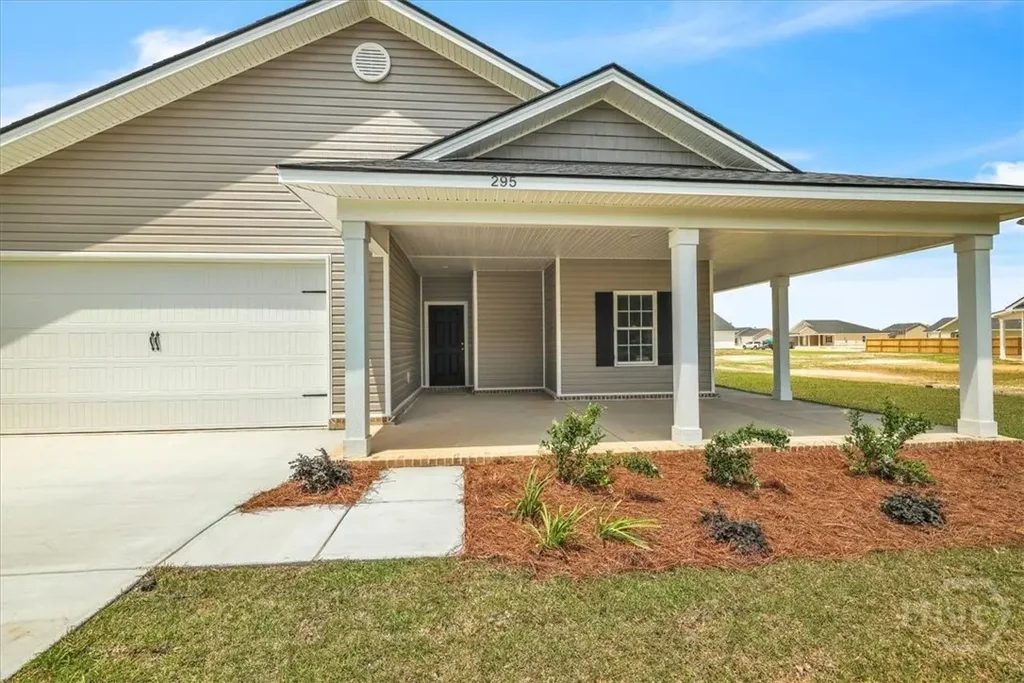 Welcome home! Designed & built by a reputable local builder, this home is located on a spacious .5 acre lot. Featuring 3-beds and 2-baths, this home offers modern living with exceptional attention to detail. This home boasts a beautiful stamped carriage-style garage door, GAF Timberline Natural Shadow architectural shingles, 9-foot ceilings throughout to create an open airy atmosphere with vaulted ceilings in key living areas. This home is built with an air & water barrier house wrap for superior insulation, & Energy Star Certified YKK windows to enhance both energy efficiency & natural light. The main living areas are finished with waterproof luxury vinyl plank flooring, & a kitchen with custom cabinets & granite countertop finished with a ceramic tile backsplash. Step outside & enjoy the covered back patio, perfect for outdoor gatherings or quiet relaxation. Contact us today to schedule your tour & make this home yours WITH 100% FINANCING AVAILBLE & $8,000 seller paid closing costs!