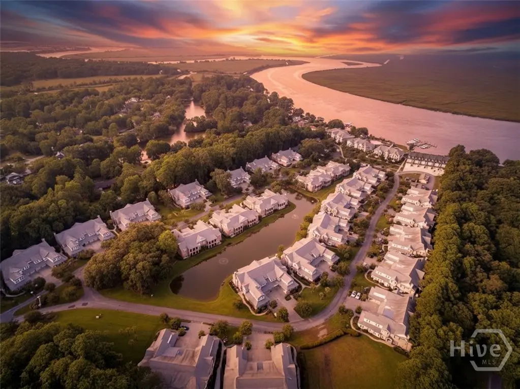 Welcome to serene, low-maintenance living in this second-floor condo nestled in a gated community. Step inside to an open floor plan with peaceful views of the woods from a spacious screened porch—perfect for morning coffee or evening unwinding. The gourmet eat-in kitchen features granite countertops, ample cabinetry, a large island, and sleek black stainless appliances. Flowing into the living room, you'll find cozy built-ins and a gas fireplace, ideal for relaxing or entertaining. Adjacent are a formal dining area and a versatile office. The primary suite offers a walk-in closet and a spa-like bath with double vanities, a jacuzzi tub, and a separate shower. Two bedrooms share a Jack-and-Jill bath, while a fourth includes its own walk-in closet. The oversized two-car garage provides excellent storage. Enjoy riverfront community amenities: a pool, fitness center, river room, and dock on the scenic Ogeechee River—all just a short drive from Fort Stewart and Hunter AAF. Furnishings are negotiable.