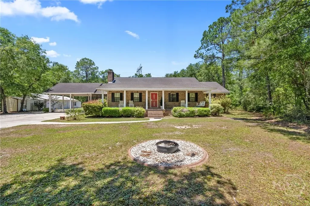 Welcome to your dream home in South Effingham! This beautiful full brick residence is nestled on 5 private acres, offering peace and tranquility just minutes from top-rated schools and only 15 minutes from Pooler or Rincon. Enjoy southern charm on the relaxing front porch, screened porch, and open back porch, perfect for entertaining or unwinding. Inside, a vaulted great room with a cozy gas log fireplace flows into the open kitchen featuring abundant wood cabinetry and a convenient eating bar. The spacious dining room is ideal for gatherings. The owner’s suite includes double vanities, a soaking tub, and a separate shower. Two additional guest bedrooms share a stylish double vanity bath. Outside, you’ll find a huge storage building, lush grapevines, and a picturesque gazebo. This property blends comfort, function, and country charm, don’t miss it!