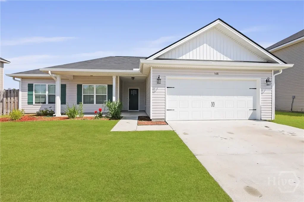 Location, location, location! Don't miss out on this charming home located in the Heritage Pointe! This subdivision is ideally situated within walking distance of the new Publix and just minutes from Ft. Stewart, I-95, and Hwy 17. From the inviting front porch, step inside to a thoughtfully arranged 4-bedroom layout featuring a split floor plan and a spacious open-concept living area at the heart of the home. The kitchen showcases white cabinetry, granite countertops, and a generous island with clear views of the family room and dining space. Tucked off the family room, the private primary suite offers a spacious walk-in closet and a luxurious bath with a dual vanity, soaking tub, and separate shower. Across the home, a hallway off the kitchen leads to three additional bedrooms and a full guest bath. Outside, enjoy a beautifully maintained and fully fenced backyard—perfect for relaxing or entertaining.