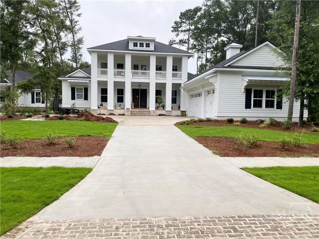 Welcome to this stunning custom built 5 bed 4.5 bath home plus loft area & storage/playroom. Open-concept living space w/high ceilings & abundant natural light. The kitchen incl a large island, elegant cabinetry, & stainless steel appliances. Large primary bedroom w/ electric fireplace & an ensuite bathroom featuring tub, double vanities, & separate shower w/ multiple shower heads. Private backyard w/ screened-in back porch w/ its own fireplace, a fenced backyard w/ waterfront views & a heated, in-ground swimming pool. Additional highlights include a spacious 3 car garage plus a golf cart garage with its own outlet, enhancing convenience and storage. Waterways is a highly sought-after gated community offering something for everyone including kayaking, gym, marina, dog park, walking/running paths, multiple pools, and more.Close to I-95, Ft Stewart, Hyundai, HAAF, restaurants, shopping, & RH schools.