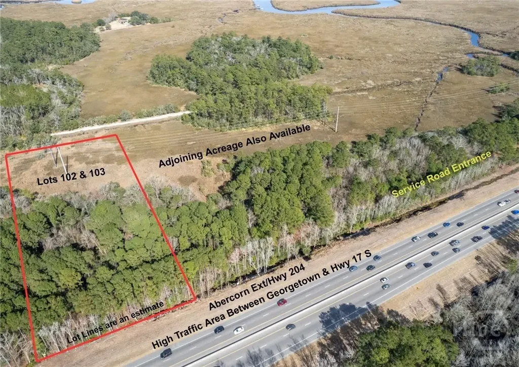 Lots 102 and 103 consists of a Total of 5 Acres with approx 2.45 Acres (+/-) Upland. Currently Zoned R-A. Approx 16 Adjoining Acres also available For Sale with approx 9.43 Acres (+/-) Upland. Adjoining Lots with Lots 102 and 103 combined for a single, larger property could total 22 Acres (+/-) with approx 11 Acres Upland. All Parcels noted above are in a High Traffic Area between Georgetown and Hwy 17S.
