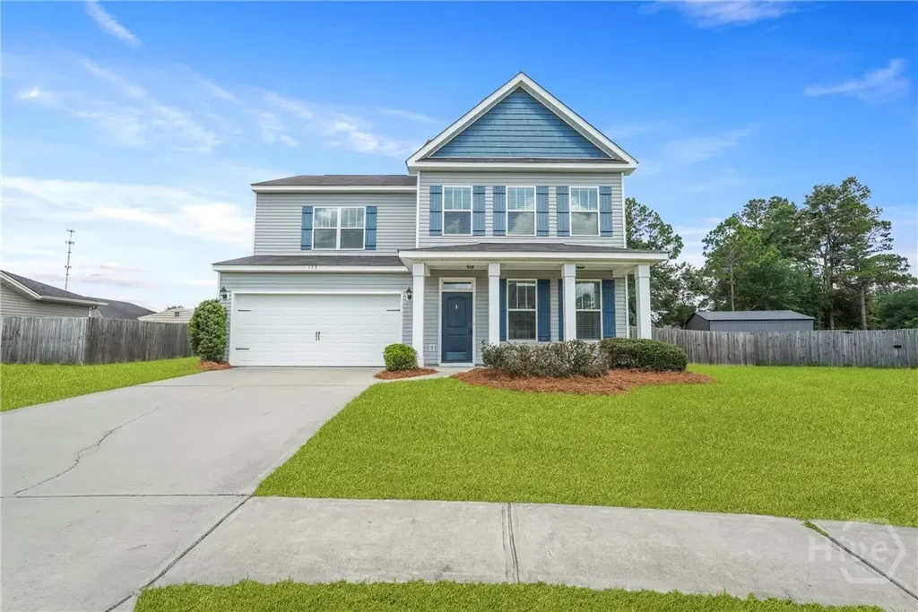 BEAUTIFLLY KEPT AND FRESHLY PAINTED TRADITIONAL HOME LOCATED IN EFFINGHAM COUNTY. This 3 bedroom, 2 1/2 bath home is situated on a desirable cul-de-sac homesite with a privacy fenced back yard and a double car garage. The spacious and open great room leads to a large kitchen and dining area. The kitchen is fully equipped with stainless finish appliances, ample cabinetry and counter top space, a breakfast bar and pantry. Also located on the lower lever is the 1/2 bath and oversized laundry room. The primary bedroom boasts of a walk-in closet and ensuite bath with double vanities, a soaking tub and separate shower. A loft divides the primary bedroom from 2 large secondary bedrooms and an additional bath. Blinds on all windows. No HOA.