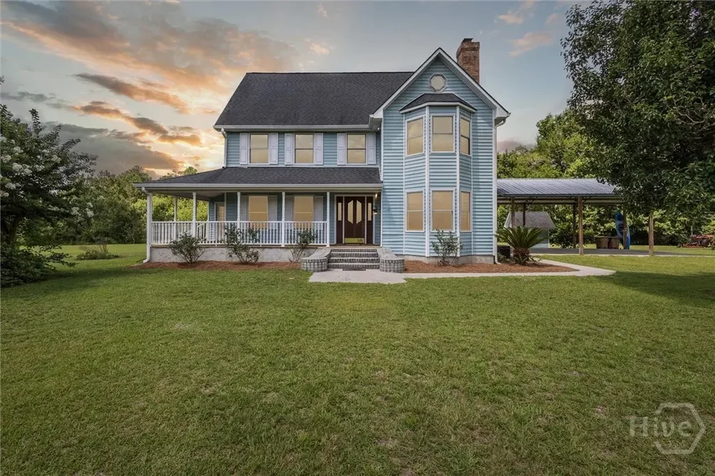 Welcome Home!!! Now is the perfect time to own your own private oasis on 11.98 Acres surrounded by trees. This property backs up to a private pond and waterway that flows into the Little Ogeechee. This stately 3-Story, 2,558 square foot home offers 3 Bedrooms, 2 and 1 Half Baths, Office on Main, Bonus Room on 3rd Story and a Spacious Living Room with a Wood Burning Buck Stove, Dining Area, Spacious Kitchen & Office. Off of the Kitchen is a Laundry Area, Walk-In Pantry and an Additional Pantry for extra storage. The Master Bedroom is located on the 2nd Floor and hosts an oversized Master Bath with Double Vanities and Double Master Closets. The First Floor hosts Luxury Vinyl Plank Flooring and the Second Floor offers Real Oak Wood Flooring. The In-Ground Chlorine Pool has a New Liner, the Shop offers 3 Roll-Up Bays and a New Well was installed in 2024. Two Pastures with Water are in the front of the home, along with Grape Vines, Pecan/Peach Trees and Camillas. This home has it all!!!