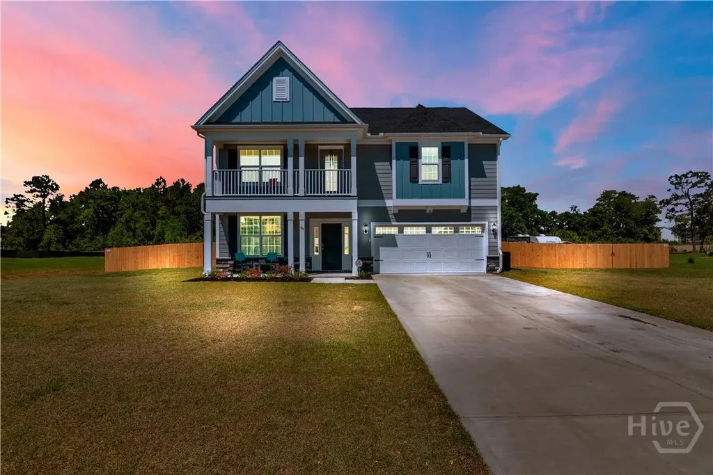 Welcome to this beautiful 4 bedroom, 2.5 bathroom home in the desirable Palmer Place subdivision in Ludowici. The main level features a formal dining room with coffered ceiling, leading to a butler’s pantry and a kitchen with stainless steel appliances, island, and ample counter space. The kitchen opens to a spacious living room—perfect for entertaining. A half bathroom is also located on the main floor. Upstairs, the primary suite includes a bathroom with double vanity, garden tub, separate shower, and a dual-sided walk-in closet. Three additional bedrooms and a second full bathroom are also upstairs, along with a charming second-floor balcony. Outside, enjoy 1.28 acres with a partially privacy fenced backyard, swing set, and two storage sheds. This home offers the perfect blend of comfort, space, and functionality. Don’t miss the opportunity to make it yours! Rear adjoining property is protected wetlands which gives added privacy. Disclaimer: the night time photo is an altered digitally enhanced photo.