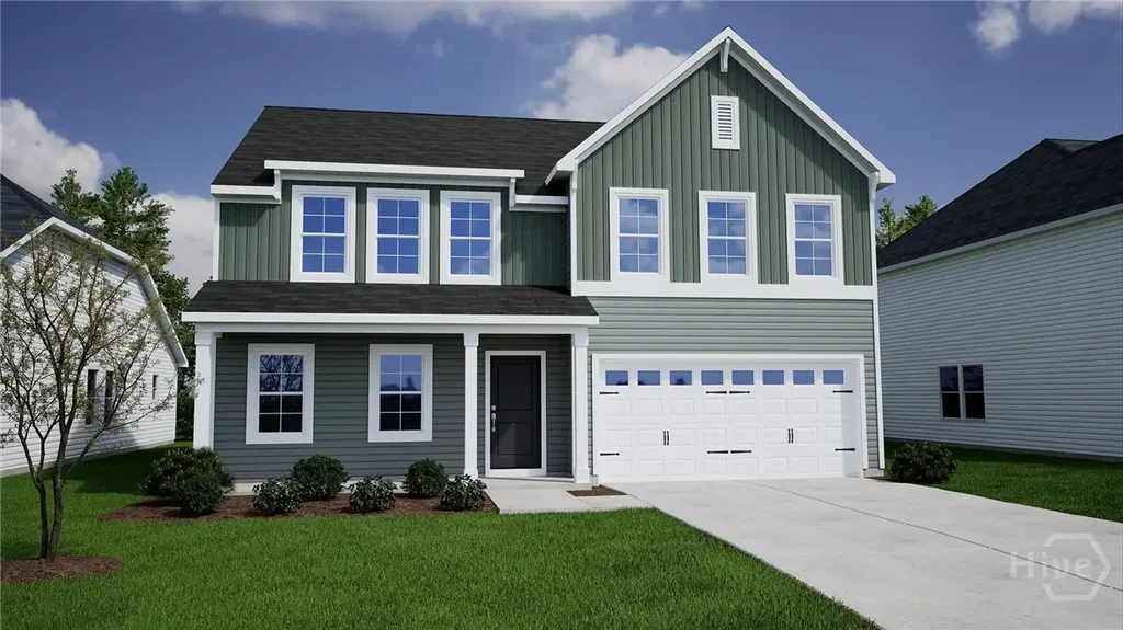 This two-story home has 5 bedrooms and 2.5 bathrooms. Immediately inside the entryway, the family room leads into the kitchen and eating area. A flex space behind the eating area has been converted into a bonus room. Upstairs are three additional spare bedrooms, two with walk-in closets, that share a full bathroom and a convenient laundry room. The primary bedroom, with vault ceilings, connects to a primary bathroom and walk-in linen and clothes closets. The home also includes a two-car garage and a covered porch, perfect for enjoying the outdoors. Situated on a sprawling 1.47-acre homesite, this home offers plenty of space both inside and out with full irrigation.