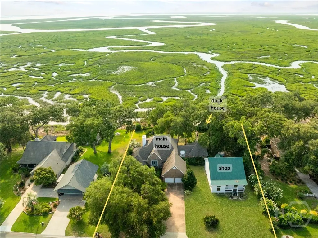 Waterfront property for sale in Coastal Georgia with 3 separate structures—just 40 minutes to Savannah and under an hour to Fort Stewart. This riverfront home includes a private dock with boat lift, a detached shop, and a separate in-law suite—offering flexibility for multigenerational living, work-from-home setups, or hobby space. Inside the main home, you'll find a spacious kitchen with breakfast nook, formal dining room, sunroom, and large living area. The primary suite is on the main level with an electric fireplace, while two guest bedrooms and a full bath are located upstairs. The in-law suite, with private access off the kitchen, provides a great setup for guests, extended family, or rental potential. A 1,280 sq ft detached shop features Hardy siding, a metal roof, spray foam insulation, and a mini split—ideal for creative projects, equipment, or business use. The dock house includes water, AC, a screened porch, gas grill, bait cleaning station, and a hand-hewn cypress ceiling with custom cupola. No HOA. No flood insurance required. Enjoy wide water views of Ossabaw and St. Catherine’s Island, and a rare chance to own a riverfront home with room to live, work, and play—all in one property.