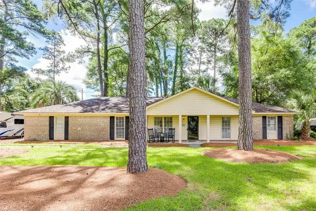 All-brick, one-level home in sought-after Harbour Creek, set on nearly half an acre. Well maintained, it features recent wood-look flooring and a flowing layout. Enjoy a formal living room, separate dining and a spacious yet cozy family room with a raised-hearth wood-burning fireplace. The kitchen offers granite counters, stainless steel appliances and a sunny breakfast area. Bedrooms are tucked privately at one end, including a primary suite with dual vanities and step-in shower. Two additional bedrooms share a second full bath. A huge mud/laundry room is just off of the garage. The lot boasts mature pines offering dappled light at the front and back. The fenced rear yard includes a small in-ground pool with newer pump—just needs a new liner. A two-car garage and new covered RV carport provide ample parking for an RV or boat. Located with easy access to all of the island and just minutes from shopping, schools, Downtown Savannah and Tybee Island, this home offers comfort, convenience, and potential. Add your personal touches and make it yours!