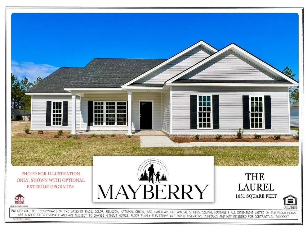 THE LAUREL PLAN BACK BY POPULAR DEMAND! Highly anticipated MAYBERRY NOW OPEN! Welcome home to this beautifully designed community featuring trusted local builder, S.D Sauers Construction! WELCOME PKG INCLUDES $8000 TOWARDS CLOSING COSTS, DESIGN UPGRADES OR MORTGAGE RATE BUY-DOWN! Premium features rarely found in this price point include lovely sidewalk lined streets w/ curb & gutter, lofty great rooms w/ 10ft ceilings, 9ft throughout, sleek granite tops in kitchen & baths, luxury plank flooring, custom kitchen w/ 36" upper cabinetry, stainless appliance pkg, 30 year architectural shingles, SPRAY FOAM insulated roof deck, Low-E vinyl windows, full brick skirt, shake/board & batten gables and sod/landscaping/irrigation pkg. on half acre+ homesites! Builder included 2-10 Home Buyer's Warranty for added peace of mind! Walkable, parklike setting w/ NO CITY TAXES! *Lot 88 Laurel offers LARGE FRONT & BACK PORCHES, tons of kitchen cabinetry & countertop space, walk-in pantry, owners suite w/ 2 walk-in closets & fabulous 72" soaking tub. *PREFERRED LENDER PROGRAM offering up to 1% LENDER CREDIT FOR ADDED SAVINGS!* With over 25 years of excellence in residential development and construction, along with a BCC degree from GSU, S.D. Sauers brings unmatched expertise to every home!