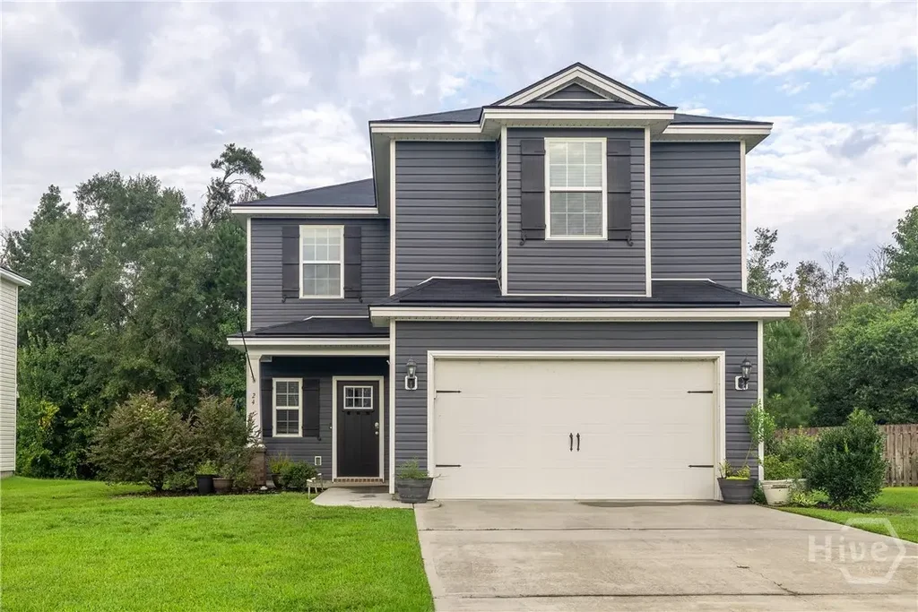 Welcome to this move-in ready home in the amenity-rich community of Bradley Pointe South, ideally located on Savannah’s Southside with quick access to I-16, I-95, Richmond Hill, and Pooler. Step inside to find wood flooring throughout the main level, enhancing the open and inviting floor plan. The spacious kitchen is a true centerpiece, showcasing granite countertops, stainless steel appliances, an island with breakfast bar, pantry, and stylish pendant lighting—perfect for everyday living and entertaining. A convenient downstairs powder room adds to the home’s thoughtful design. Upstairs, plush carpet runs throughout all bedrooms, including the sizable owner’s suite featuring a tray ceiling, ensuite bath with double vanities, oversized shower, private water closet, and generous walk-in closet. The laundry room is also upstairs, making household routines a breeze. Out back, enjoy peaceful wooded views from your lush lawn, private patio, or cozy fire pit—the perfect setting for relaxation or gatherings. This beautiful home offers comfort, convenience, and community—don’t miss your chance to make it yours!