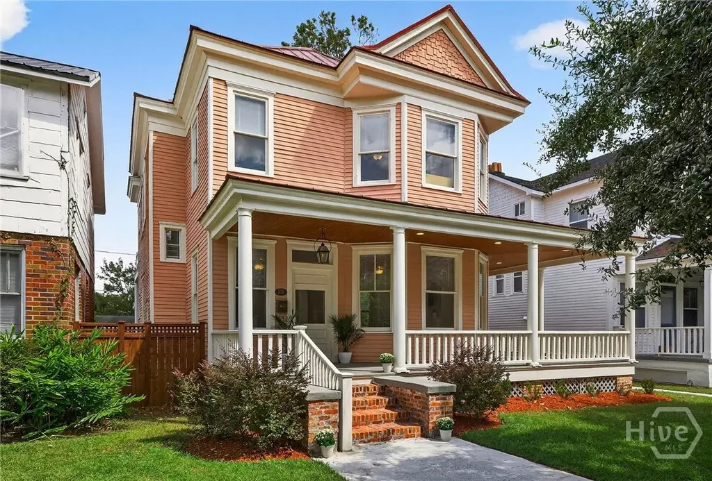 Step into a piece of Savannah's rich history with this meticulously preserved 5-bedroom, 3-bathroom home, built in 1903. This residence seamlessly combines historic charm with modern amenities. A welcoming wrap-around porch invites you to unwind and enjoy Savannah's temperate weather. Inside, the home’s original architectural features have been thoughtfully preserved through collaboration with HSF and Ethos Preservation: hardwood floors, stunning pocket doors, wainscoting, and original fireplace mantels add character and warmth to every room. Natural light pours in through large windows, bathing the interiors in a soft, golden glow by day, while elegant chandeliers create a magical ambiance as evening falls. Located close to the iconic Forsyth Park, the vibrant Victorian and Thomas Square neighborhoods, and SCAD’s Anderson Hall, this home places you in the heart of Savannah’s historic district. This is more than just a home, it’s an opportunity to live among history.