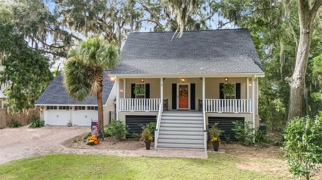 Enjoy breathtaking waterfront sunsets in this exquisitely renovated home on a sprawling deep tidal 1.32-acre lot in the desirable town of Richmond Hill. Enjoy the freedom of NO HOA and NO flood zone. This fully equipped home boasts a new roof, fully renovated private floating dock with electric & water, a fish-cleaning station, a new water filtration system, full irrigation, generator, and a breaker box ready for your dream pool. The property features a spacious pull-through garage, fenced yard, a pad for a chicken coop, and an enclosed back porch perfect for savoring Lowcountry views. Inside, a grand two-story foyer welcomes you to soft-close cabinetry, gleaming quartz countertops, a cozy fireplace with custom built-ins, fresh paint & plush new carpet. The main-level owner's suite offers a walk-in shower and freestanding clawfoot tub. Upstairs, two generous bedrooms, with large bathroom and two expansive walk-in attics for future bedrooms or custom spaces. Embrace Southern living by the fire pit as egrets, cranes, and herons glide over the shimmering waterfront, or fish and crab from your private dock. Featuring the Demeries Creek boat launch just moments away! This coastal Georgia masterpiece of timeless Southern charm-your refined retreat awaits. Some photos may be virtually enhanced*