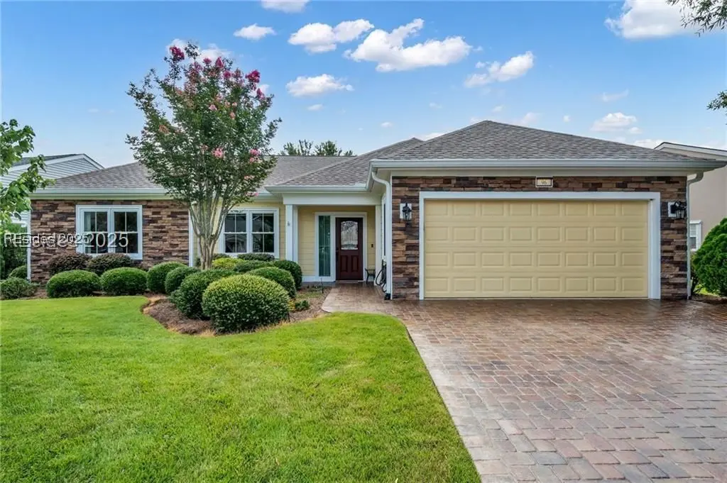 This stunning Dogwood model home has been completely remodeled and is situated on a picturesque lagoon. Updates include smooth ceilings, crown molding, and oversized baseboards throughout. A new three-zone, three-ton 14 SEER HVAC system with individual thermostats was installed, and a new roof with commercial-sized gutters was added in 2018.In 2019, the kitchen underwent a full redesign, featuring new soft-close cabinets, ample drawer space, under-cabinet lighting, LED tape lights in the antique glass doors. Premium Bosch appliances including a five-burner gas cooktop, wall oven and microwave combination, and dishwasher. The kitchen is complemented by a Samsung Bespoke French four-door refrigerator, granite countertops, and a cherry wood topping the center island. The spacious master suite offers a tiled walk-in shower, built-in closet, and a separate cedar-shelved linen closet (added in 2022). A separate laundry room with granite countertops provides convenience. The 23' x 14' lanai features a hard roof, vinyl windows, and its own zone thermostat, ensuring year-round comfort. The main living area and lanai are finished with elegant 24x24 rectified porcelain tile flooring. In 2020, the exterior received new Hardie Plank siding with stone accents, replacing the previous stucco. All windows were upgraded to Simonton high-impact double-hung hurricane models, and a fiberglass entry door with leaded glass details enhances the entryway. Additional upgrades include a Wi-Fi-enabled garage door system, an extended paver driveway and back porch (2021), Ranai whole-house gas tankless water heater, fully encapsulated spray foamed attic, soffits and garage; new bedroom carpets with 8 lb pad, and French doors on the den. In 2023, the front yard was landscaped with Zoysia grass and a red Acer Maple tree was planted to complete the transformation.
